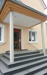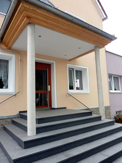 Ebenfalls wurde im der Eingangsbereich neu gestaltet und mit einem Vordach versehen.