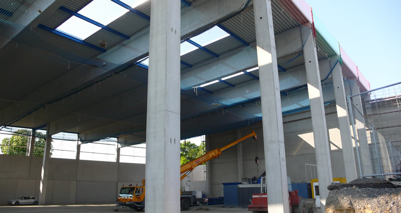 Hier galt es die umfangreiche Maschinenausstattung auf höchstem technischen Niveau für die Materialtrennung der enthaltenen Metalle und Kunststoffe unter Beachtung von enormen Brandschutzvorgaben in ein robustes und kostengünstiges Bauwerk zu integrieren.
