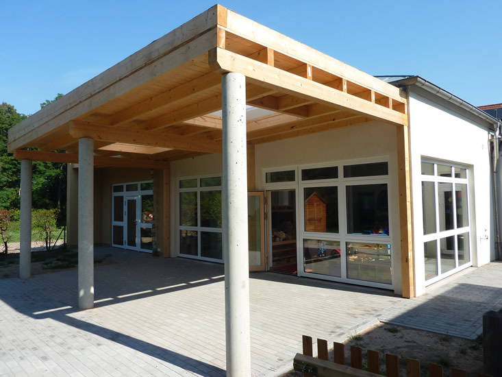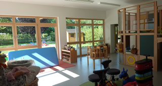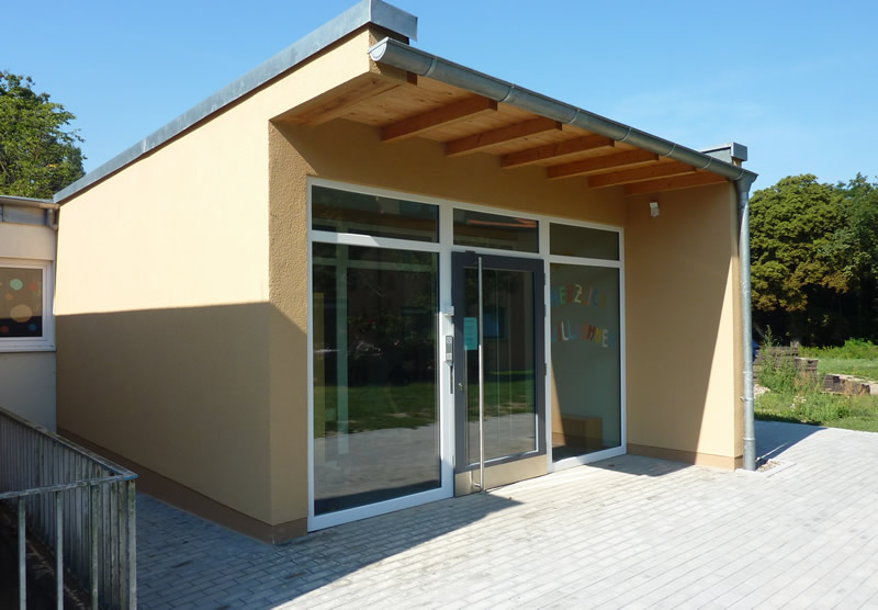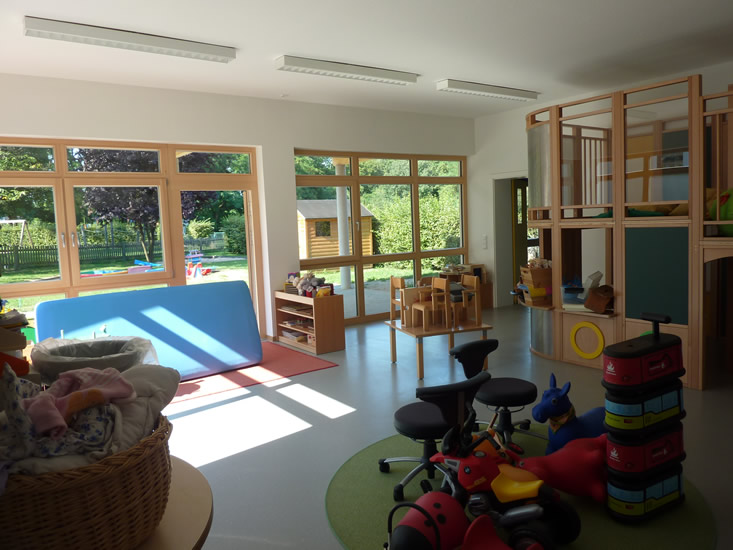 Mit Anbau eines Gruppen- u. Ruheraumes sowie eines eigenen Eingangsgebäudes wurde der 4- gruppige Kindergarten in Wonfurt für die Unterbringung einer 1- gruppigen Kinderkrippe in die Lage versetzt, auch für Kleinkinder bis 3 Jahre ein Betreuungsangebot zu haben.