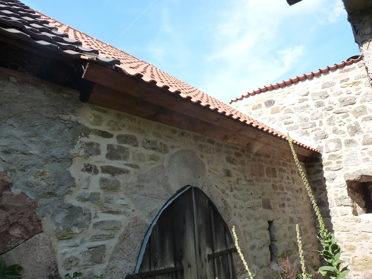 Das schwer beschädigte Bauwerk erhielt einen neuen Dachstuhl, die Dachdeckung wurde nach dem historischen Vorbild mit neuen Wellfalzziegeln erneuert und alle Wände nach gründlicher Säuberung ausgebessert und mit einem dem Originalmörtel nachgemischten Mauermörtel vollständig neu gefugt.